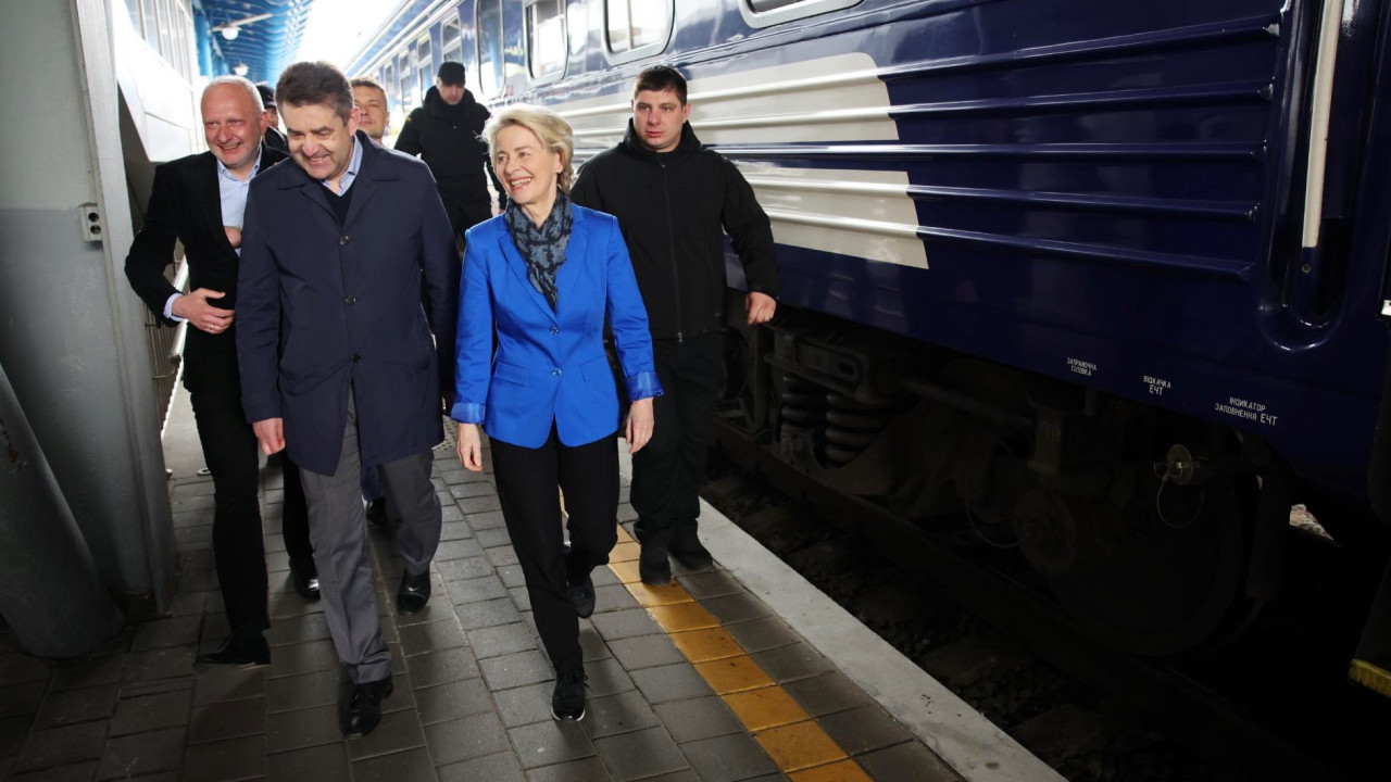 Ursula von der Leyen arrived in Kiev on an overnight train from Poland to meet Ukrainian President Volodymyr Zelensky and work on Ukraine’s bid to join the European Union, according to reporters accompanying her.